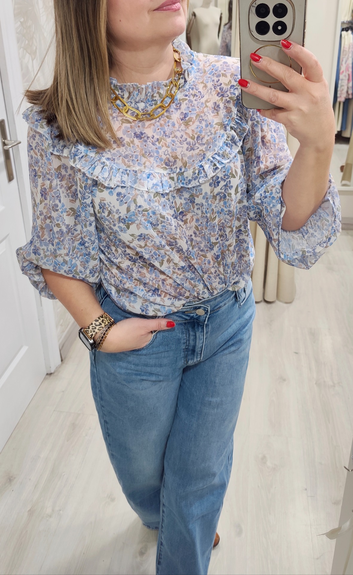 Blusa gasa floral detalles de volantin, talla única recomendada 36 a 40/42