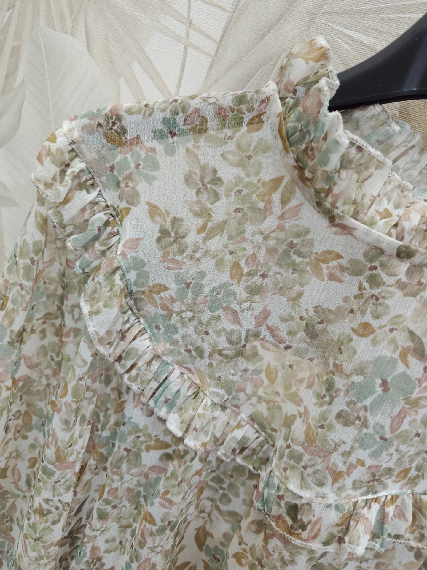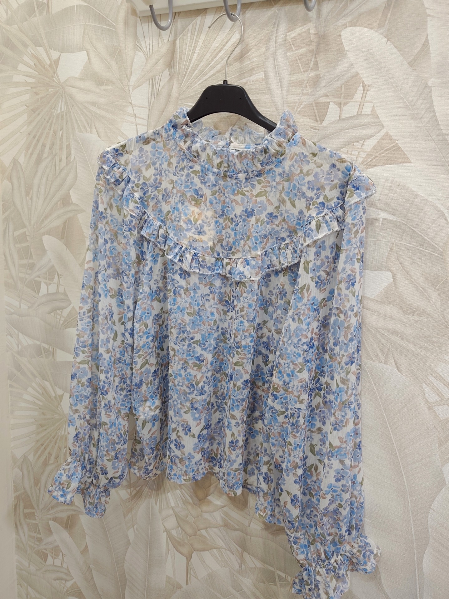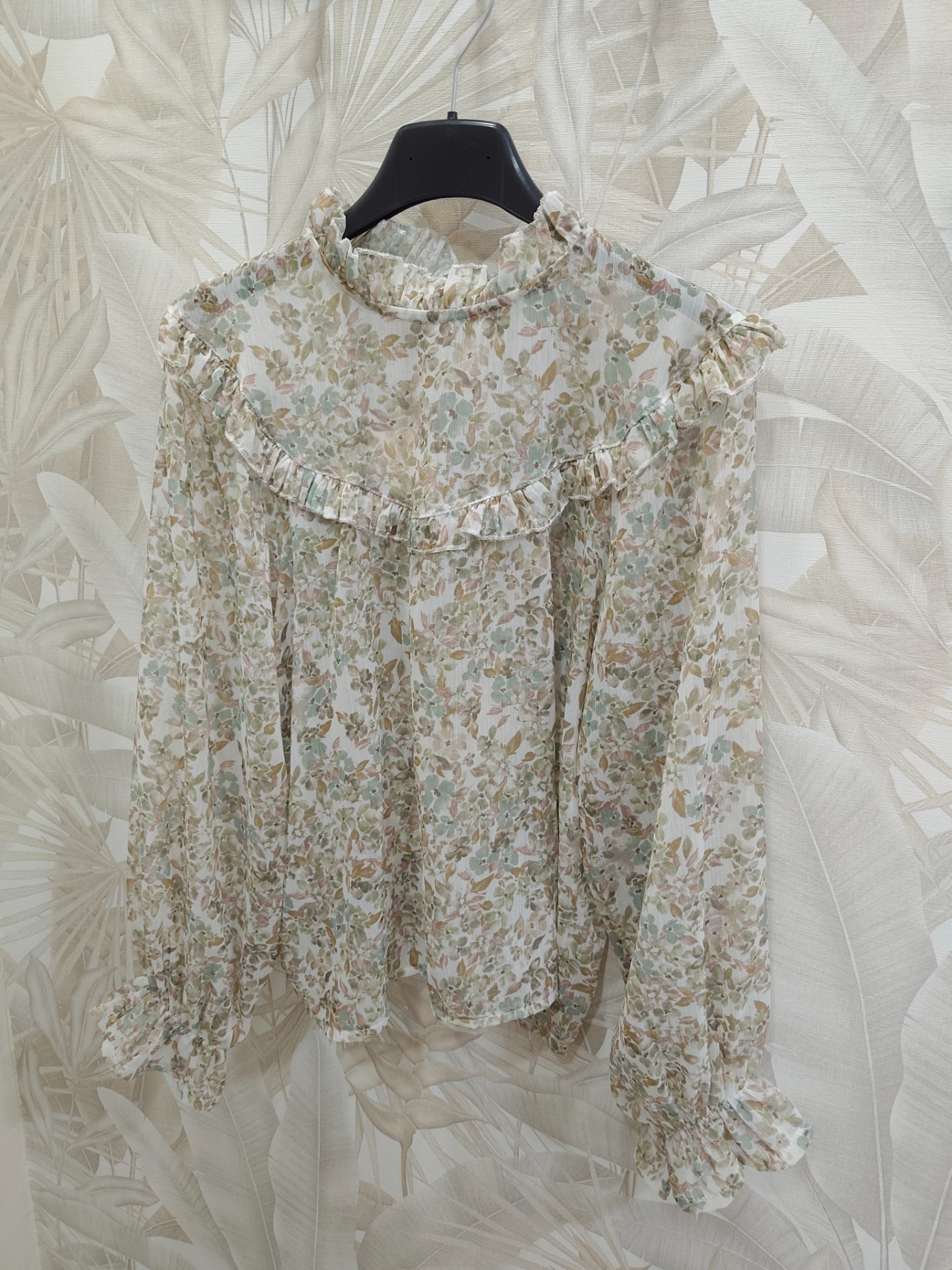 Blusa gasa floral detalles de volantin, talla única recomendada 36 a 40/42
