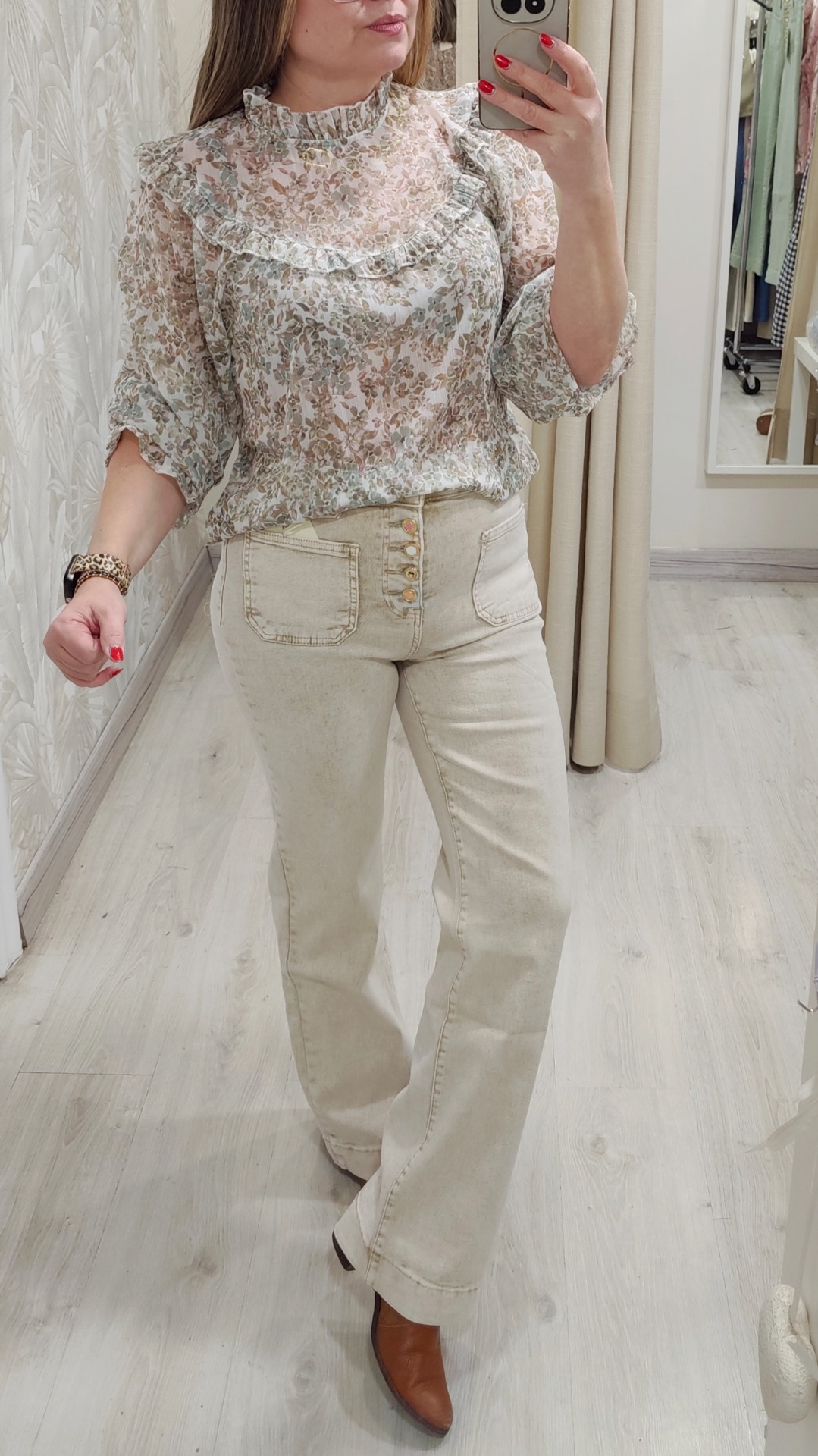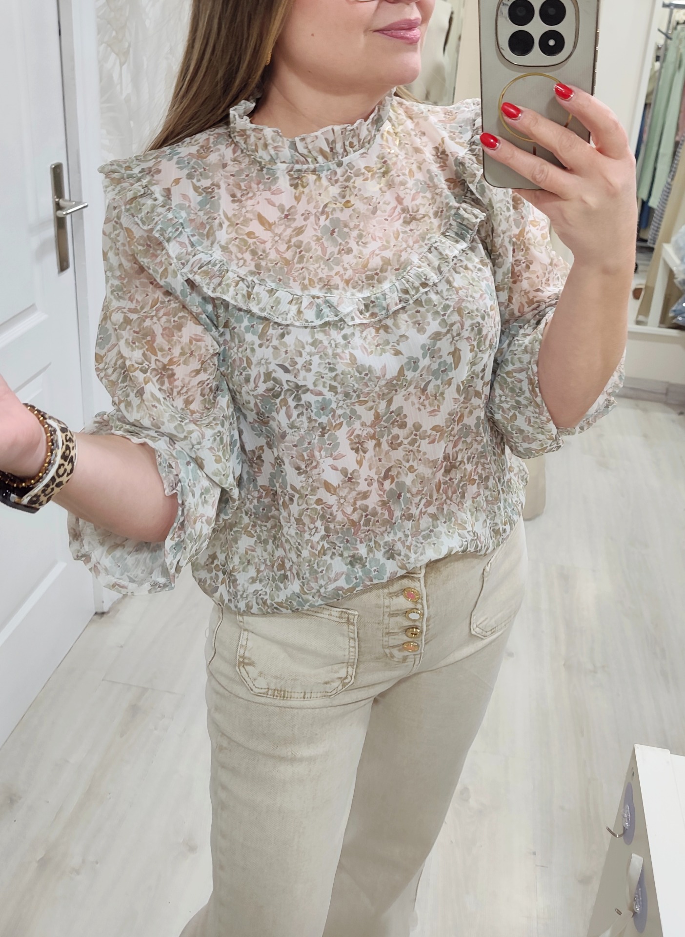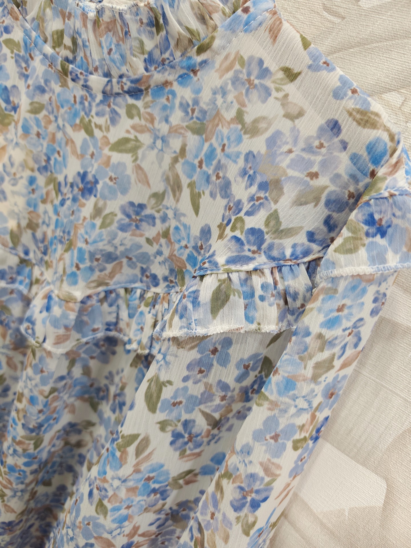 Blusa gasa floral detalles de volantin, talla única recomendada 36 a 40/42