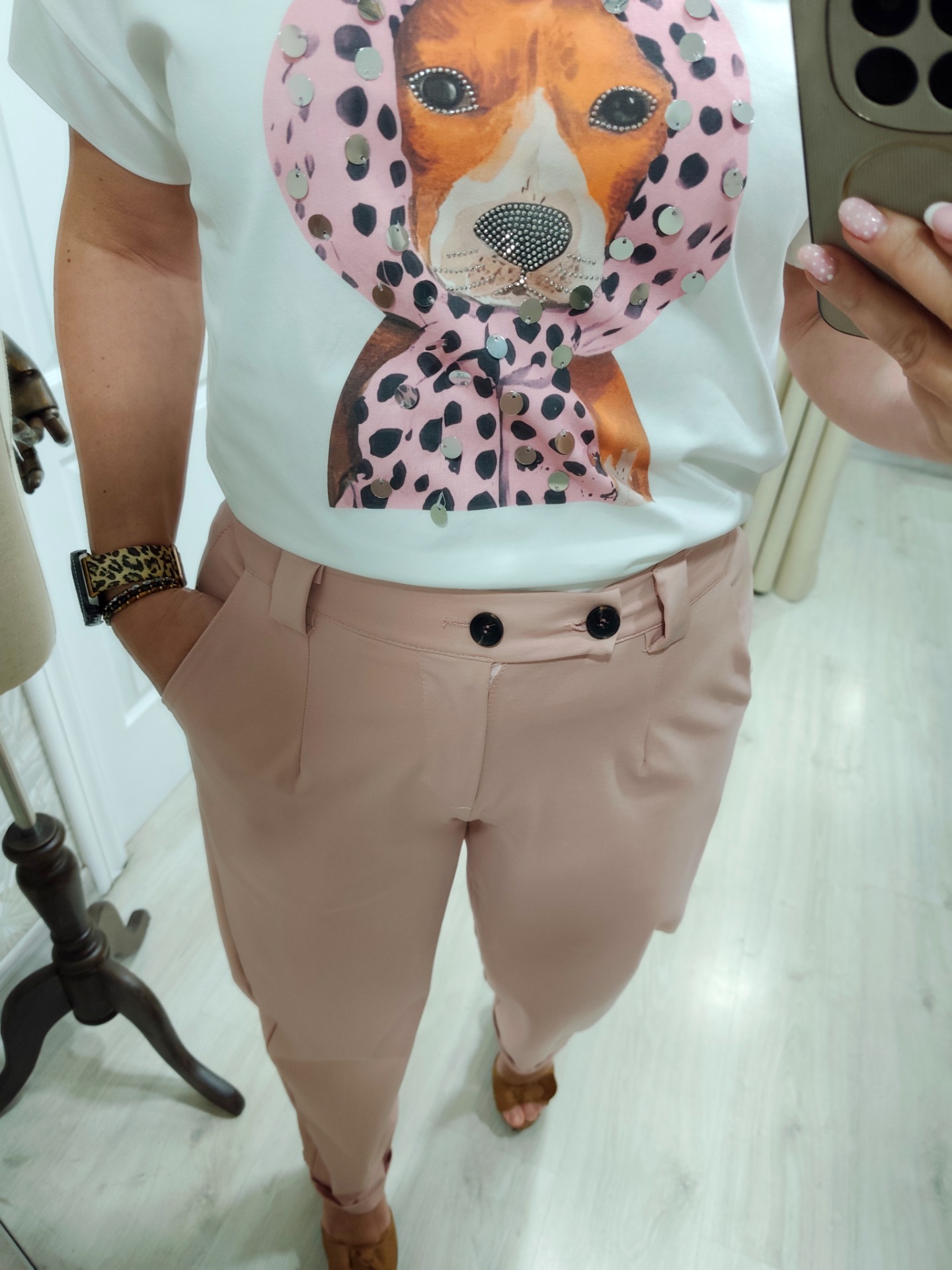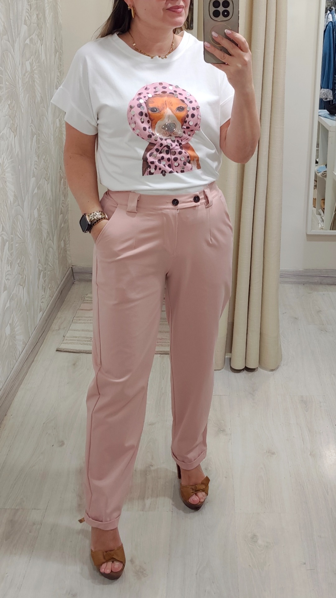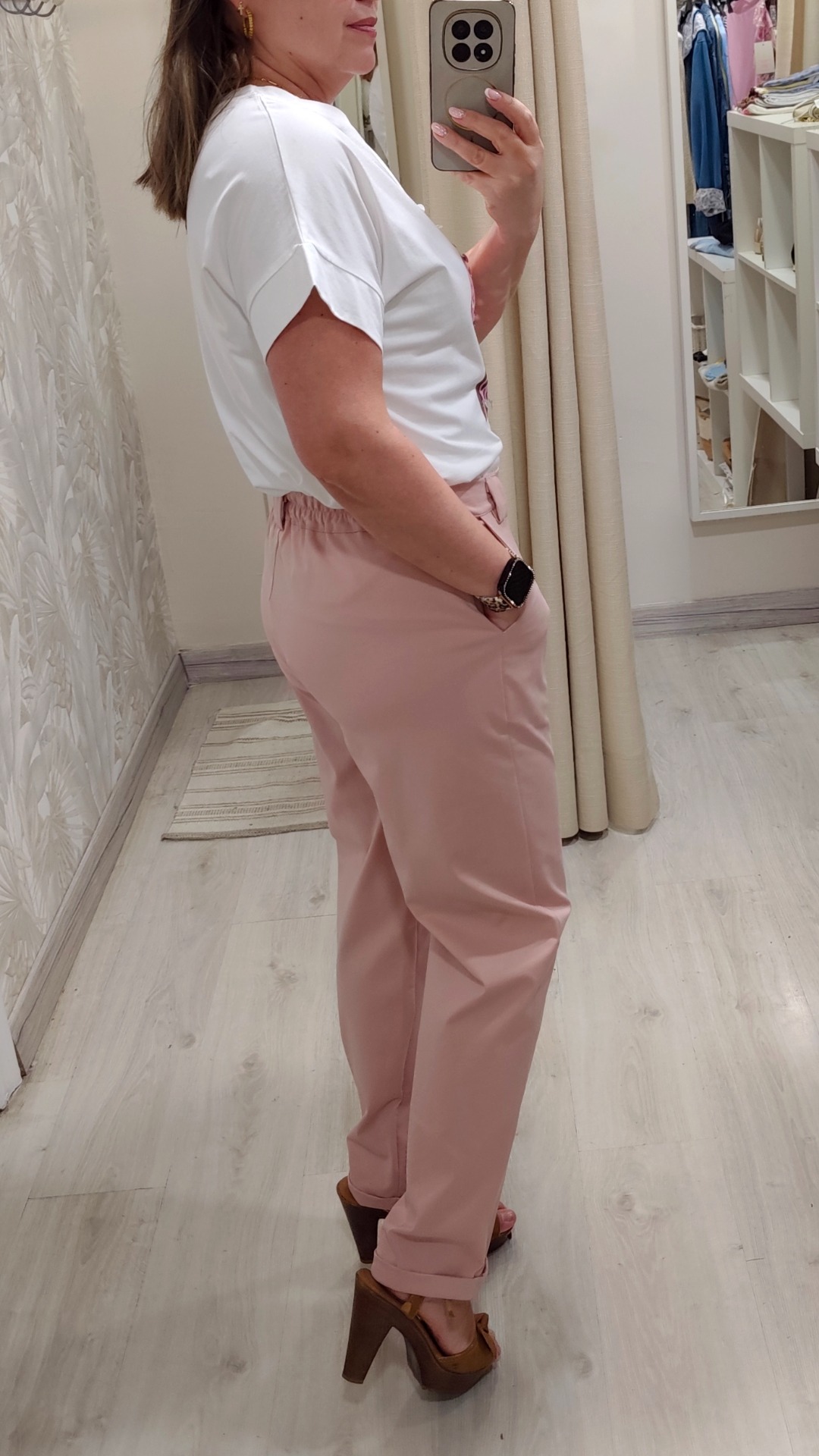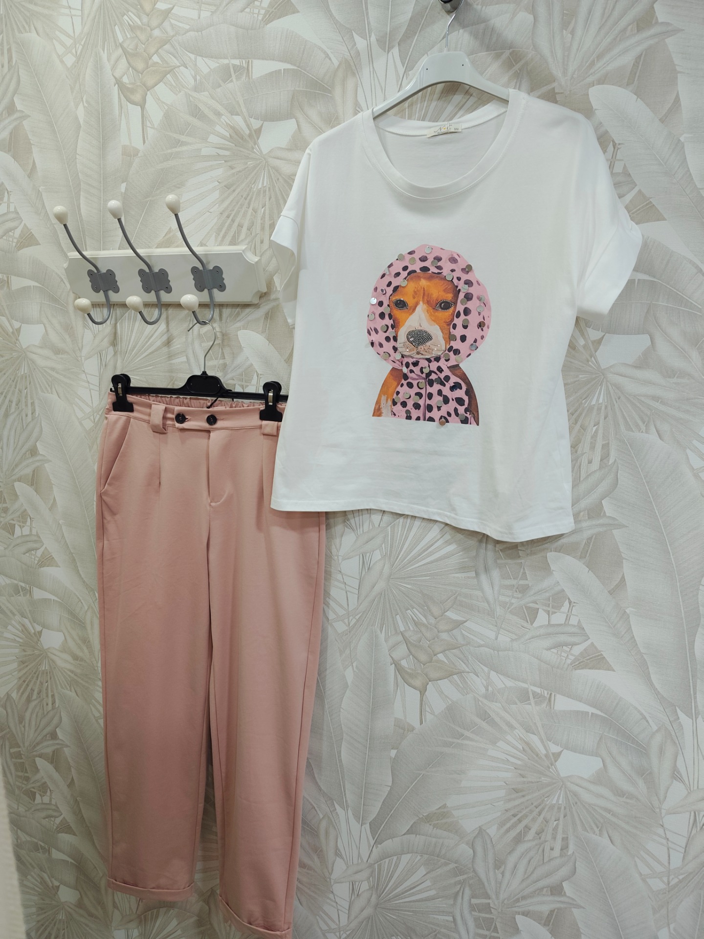 Compuesto de pantalón color rosa dos botones en tejido punto muy suave