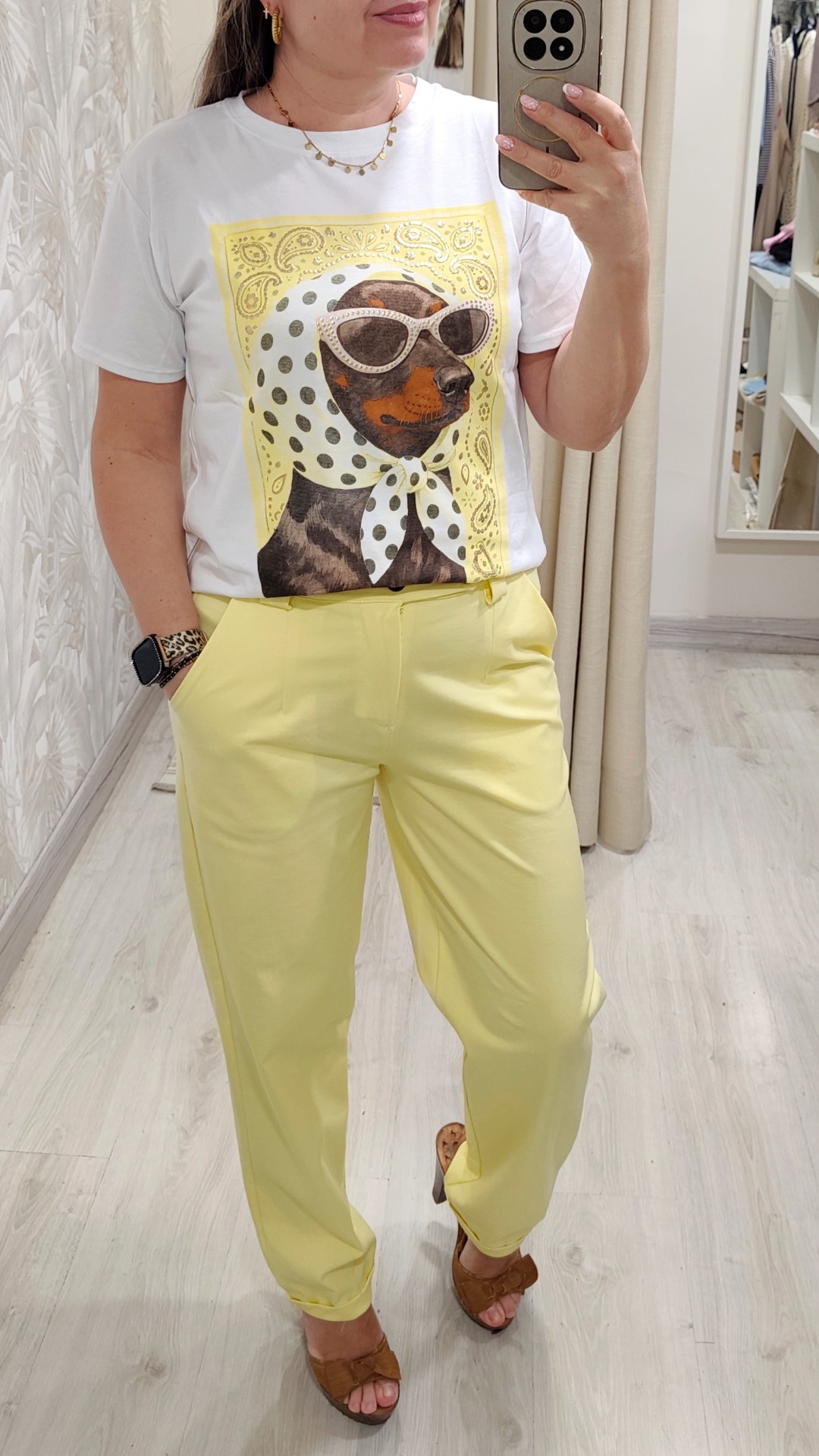 Compuesto de pantalón color amarillo dos botones en tejido punto muy suave