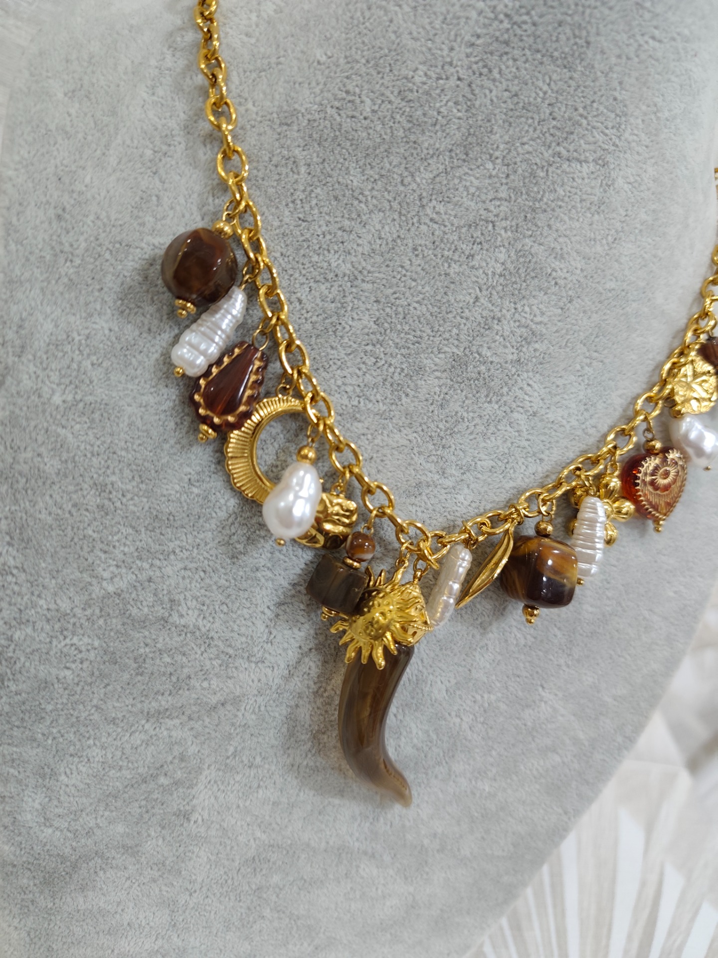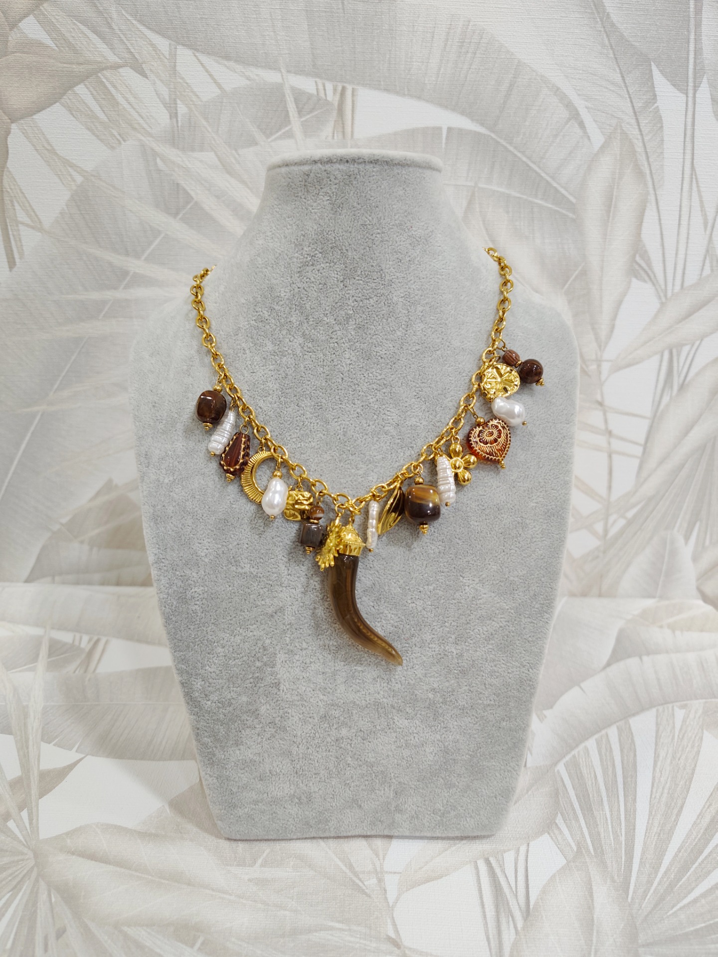 Collar cuerno abalorios acero