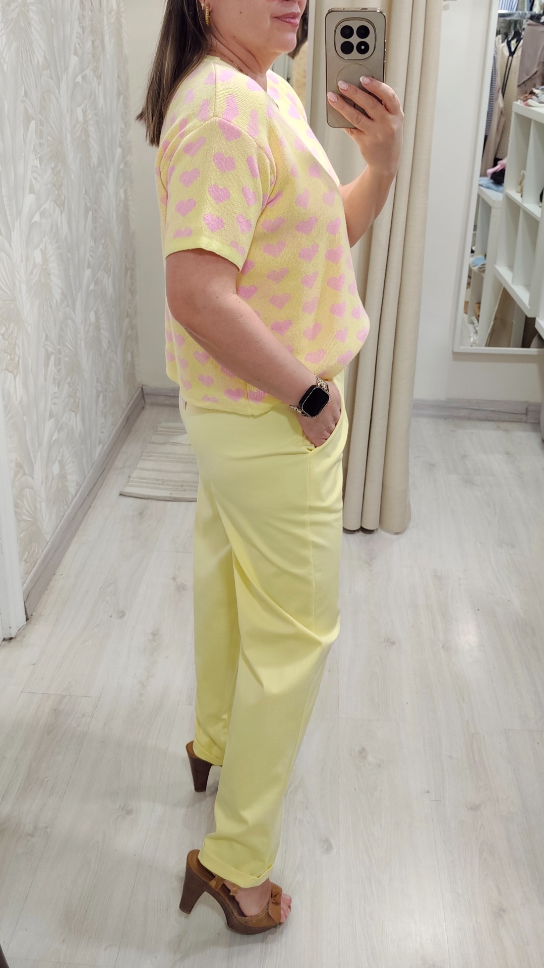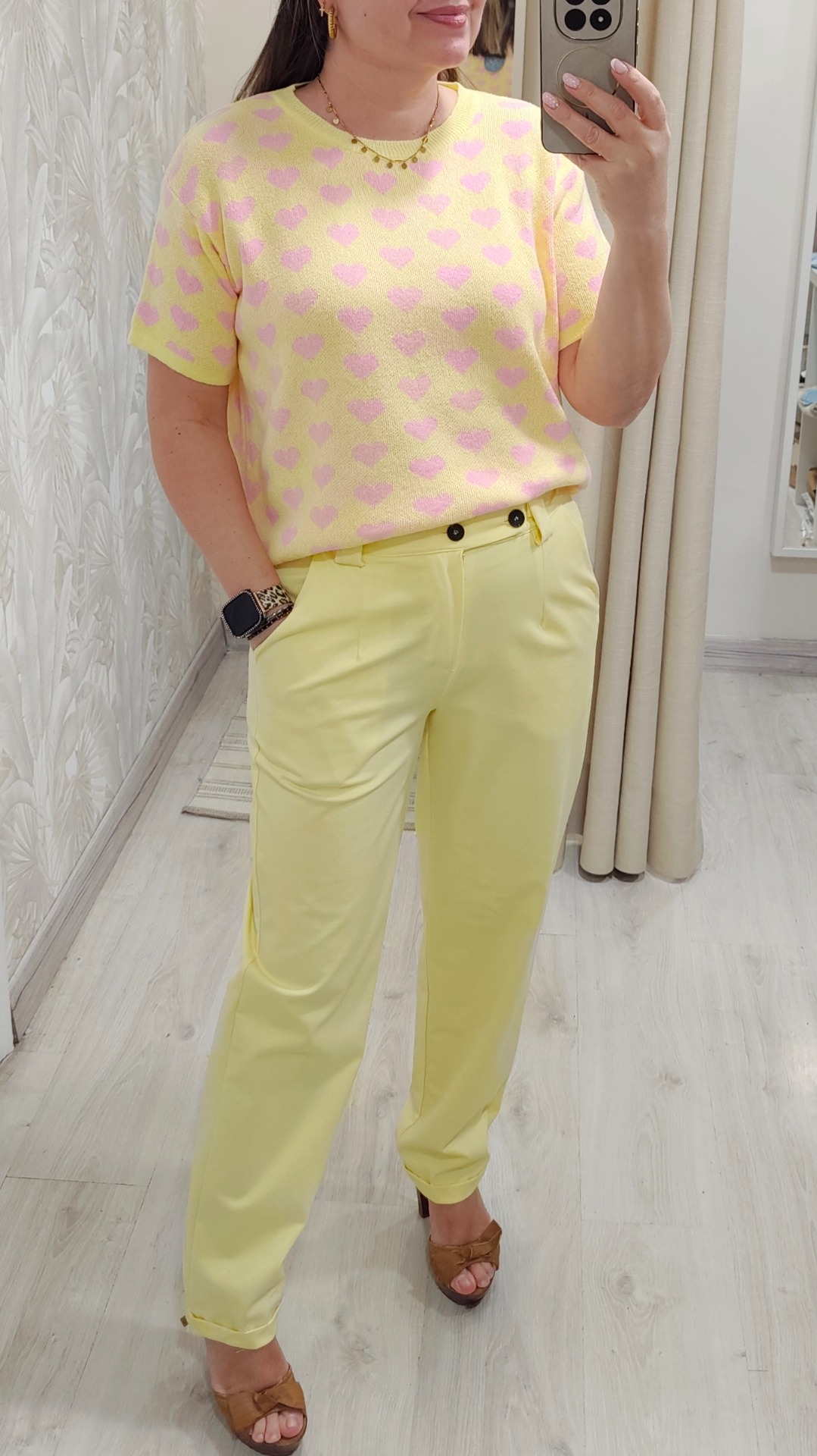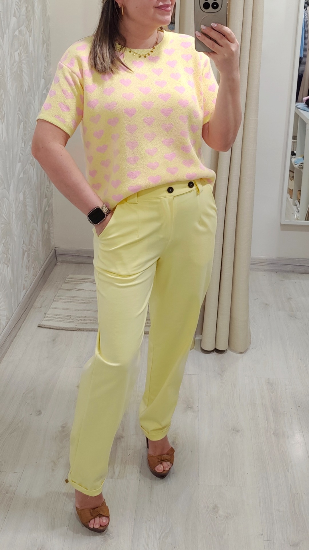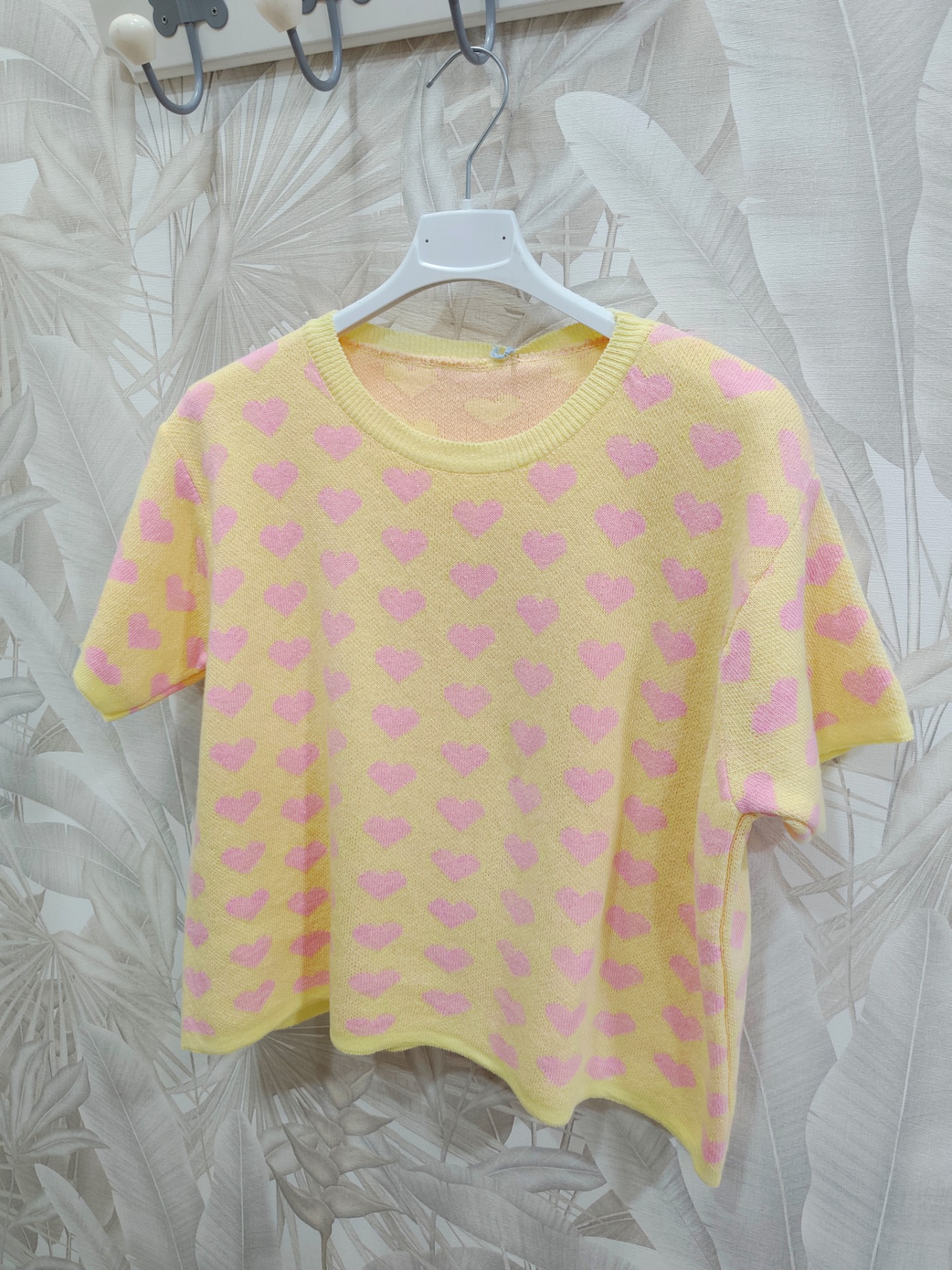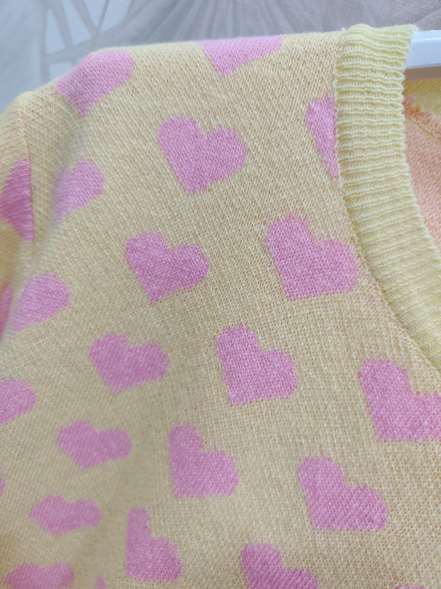 Fondo amarillo con corazones rosa bebe