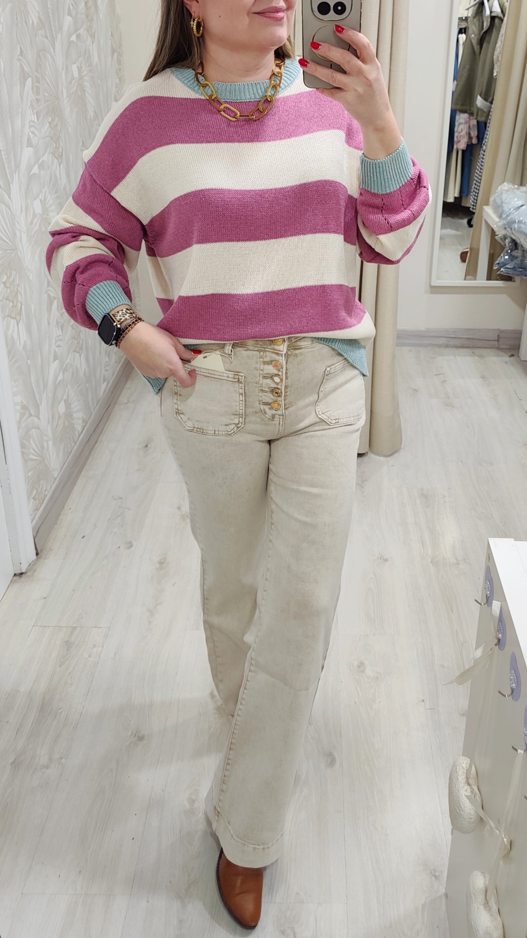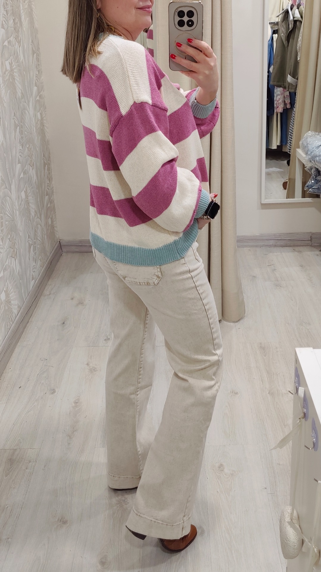 Jersey punto bicolor fucsia y turquesa talla única recomendado de la 36 a la 42
