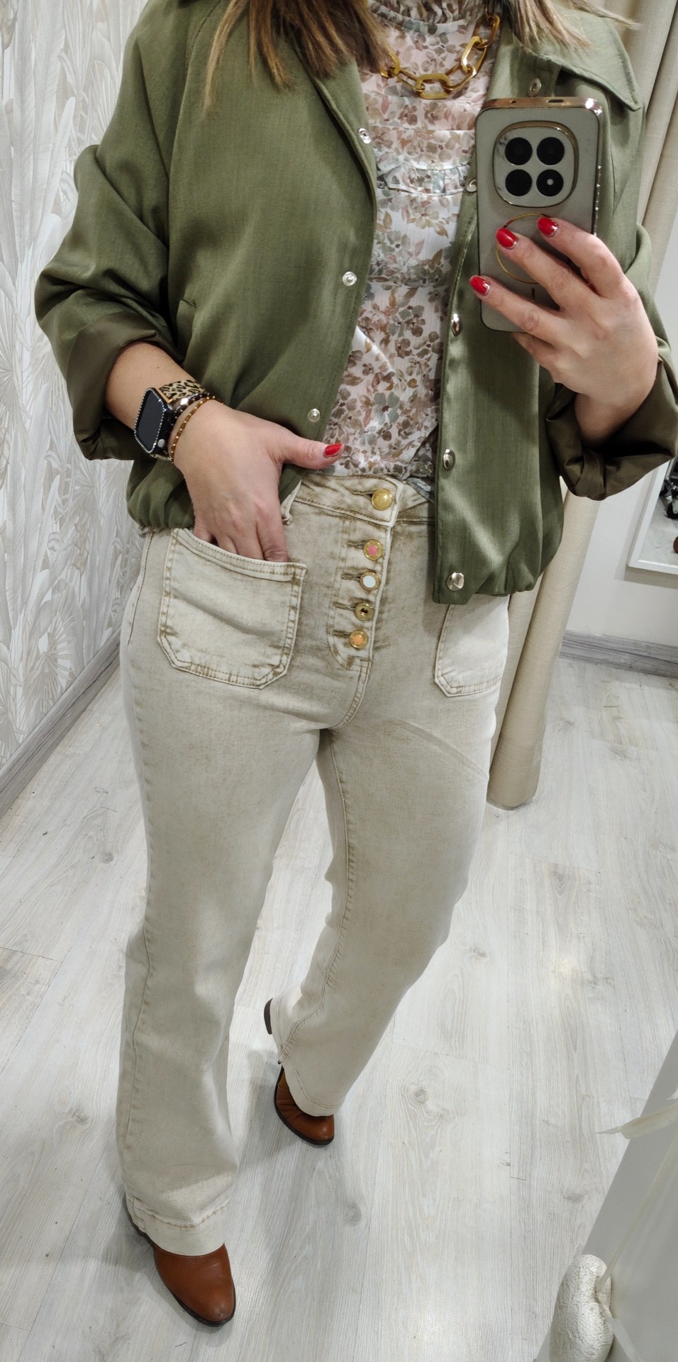Pantalón botones Fantasia beige lavado