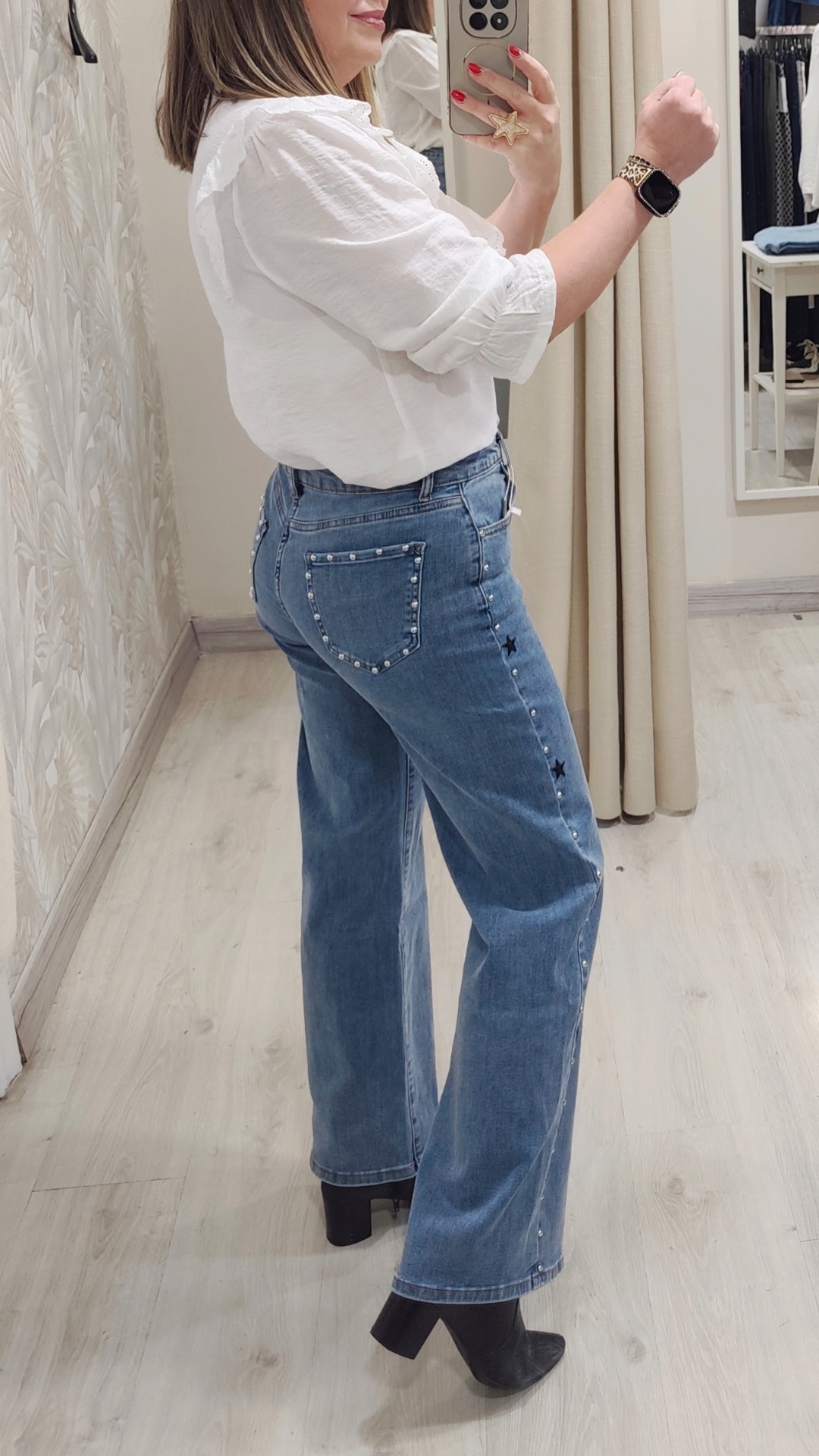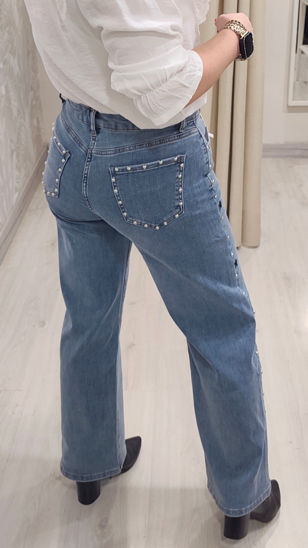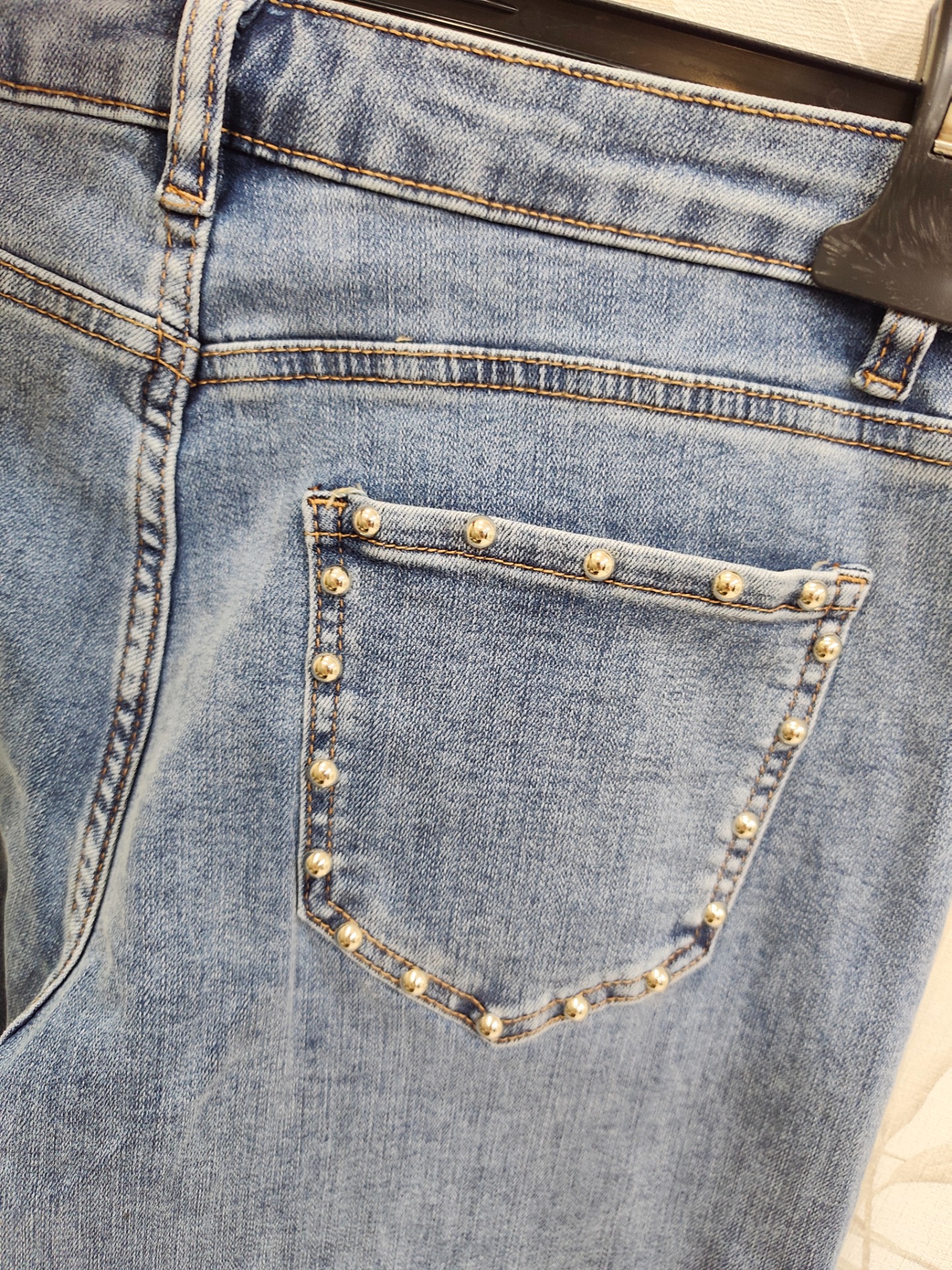 Bolsillos traseros con ribete en tachuelas