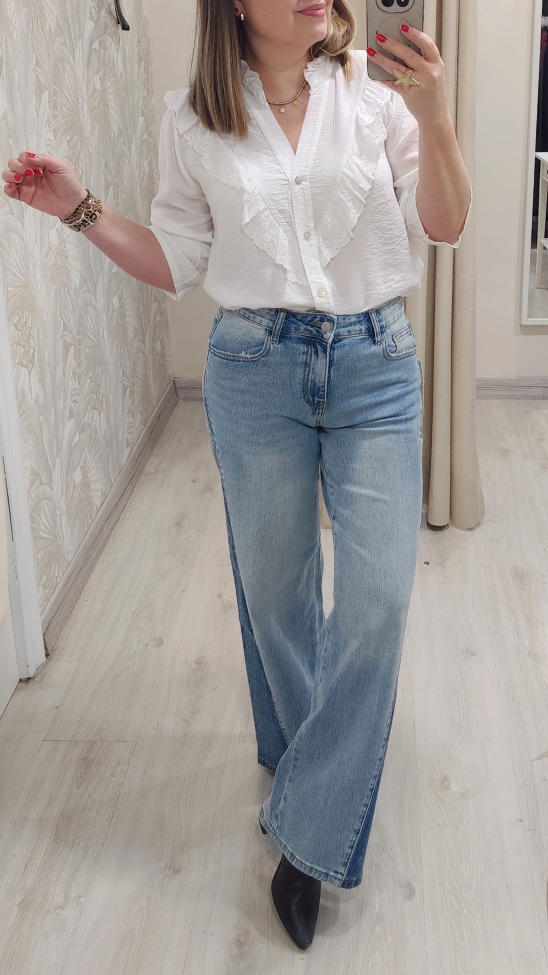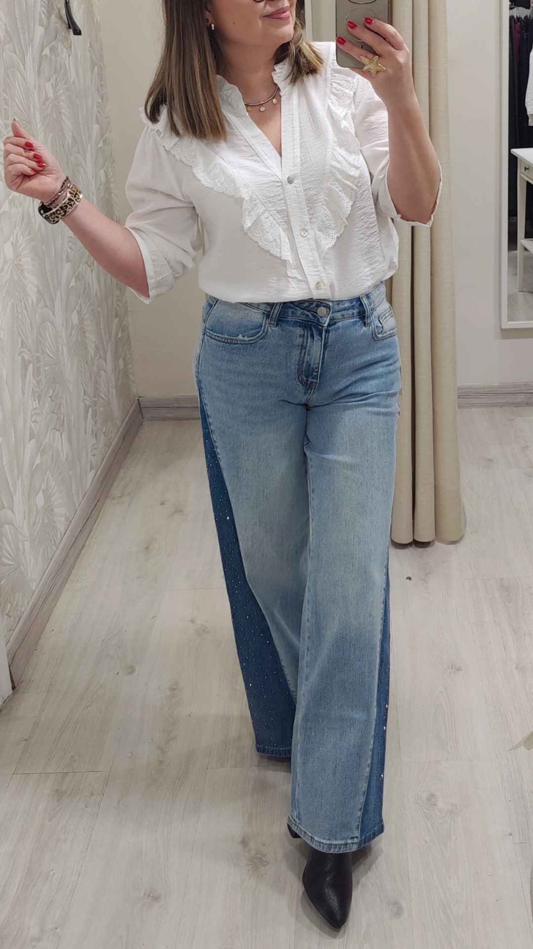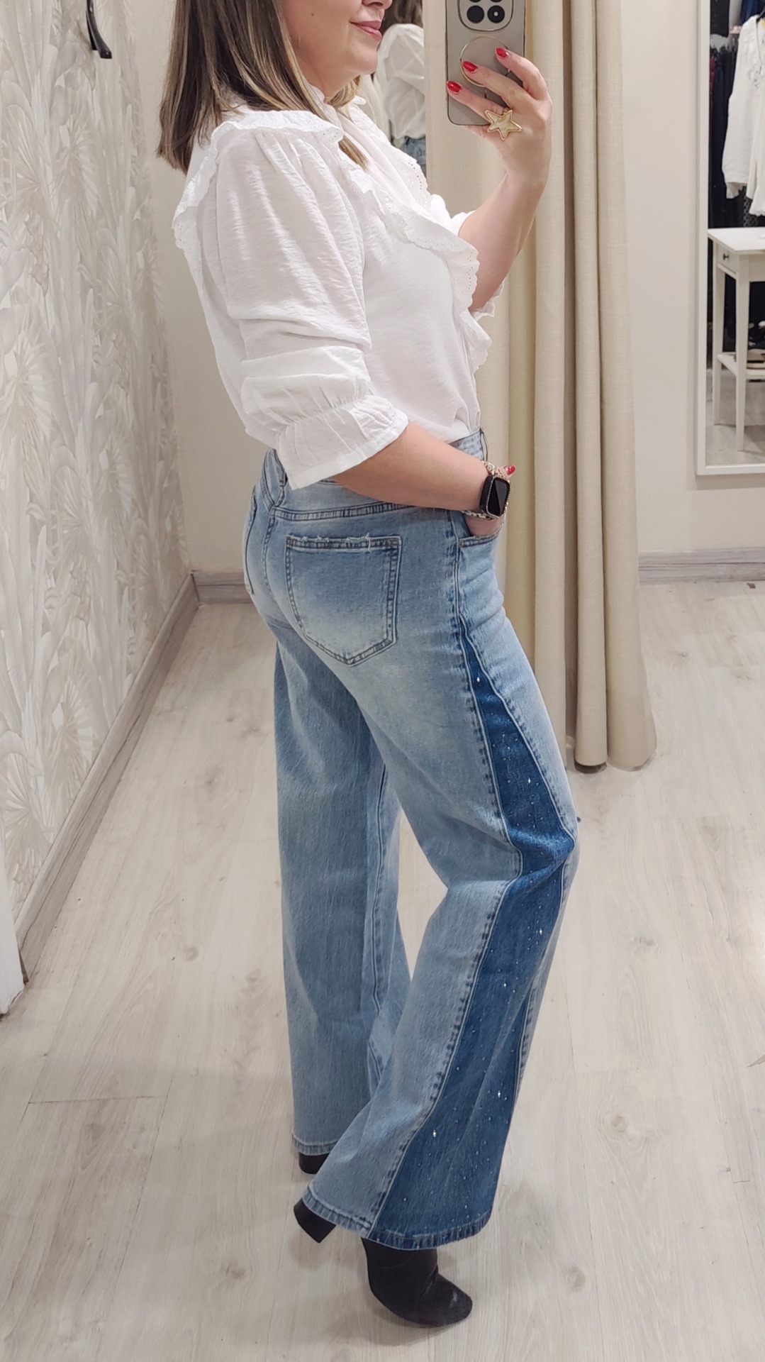 Vaquero corte ancho balloon con corte triangular y tachuelas de brillo