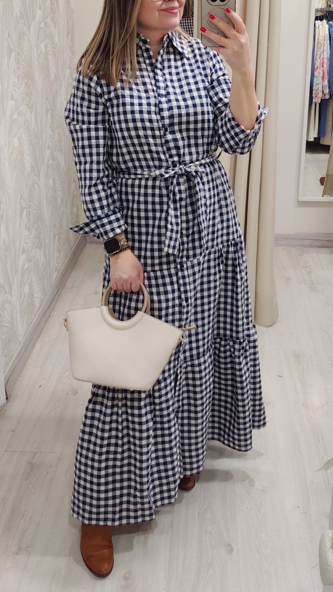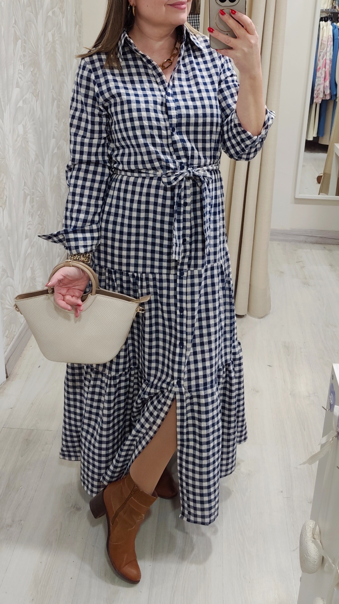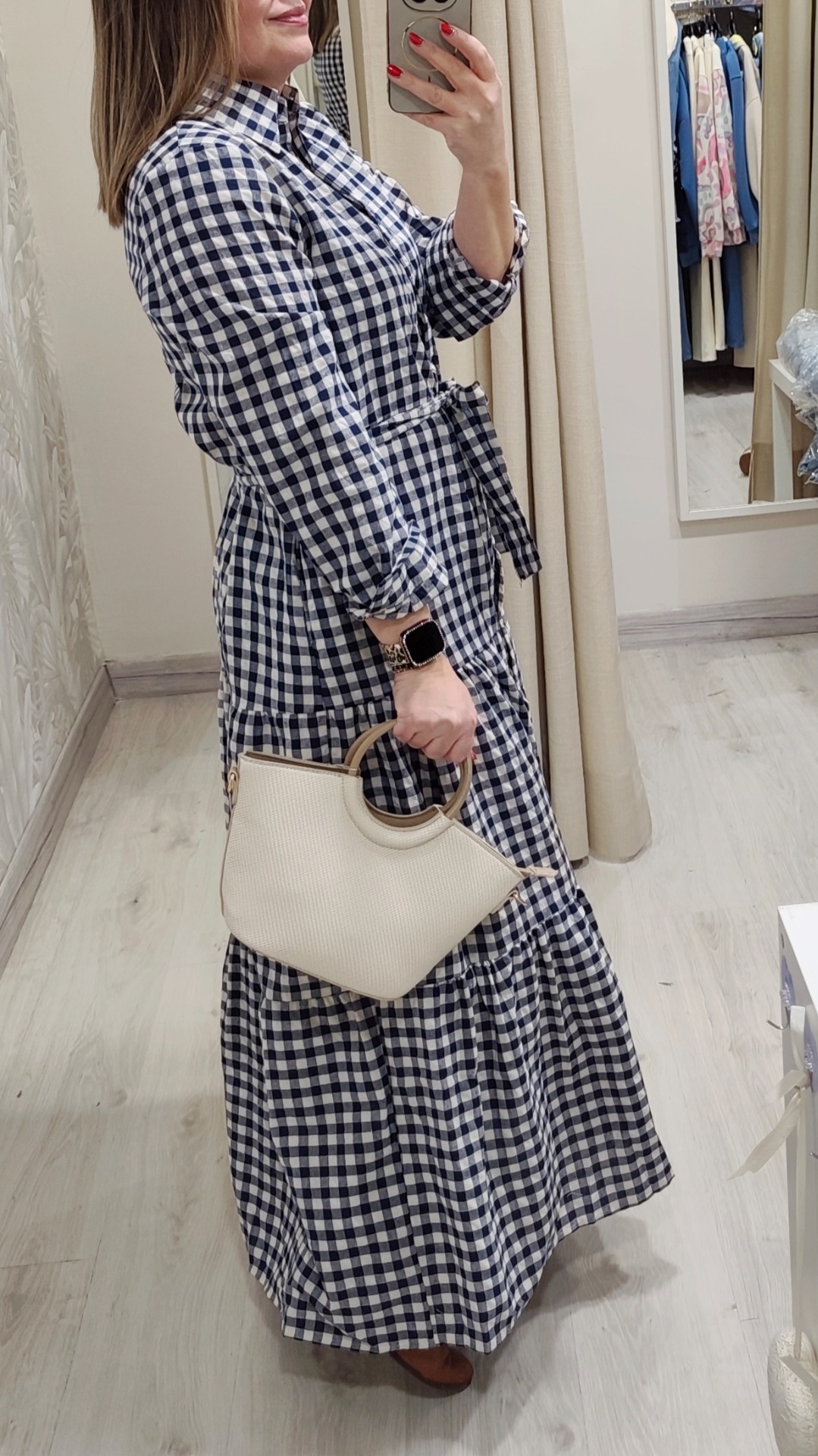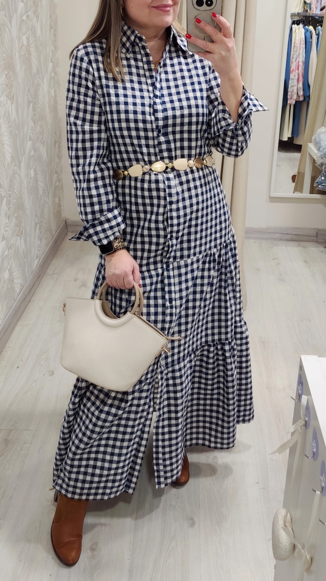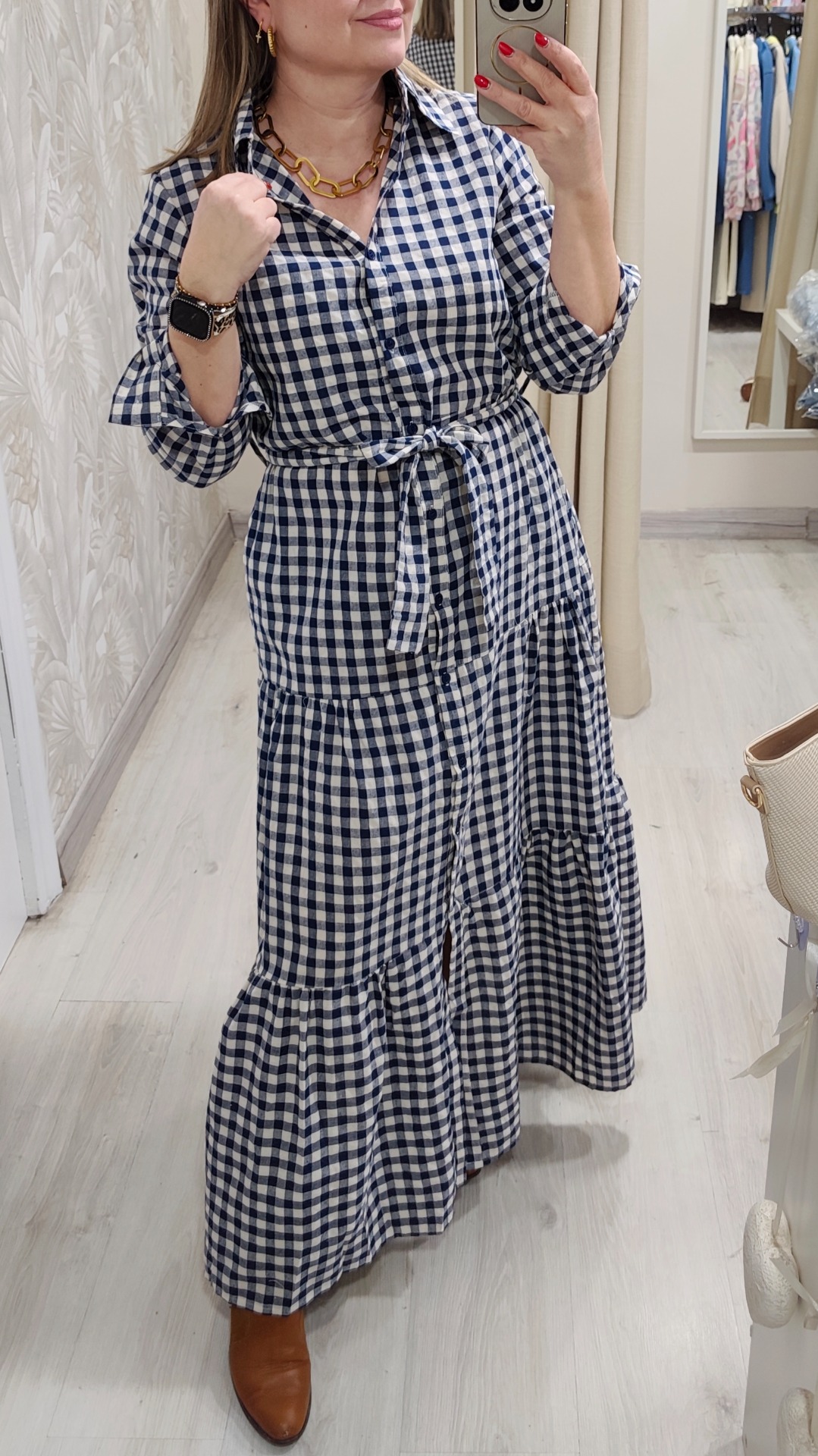 Vestido en vichy marino y blanco, cinturon de piedras no incluido., viene con su cinturón en el mismo tejido